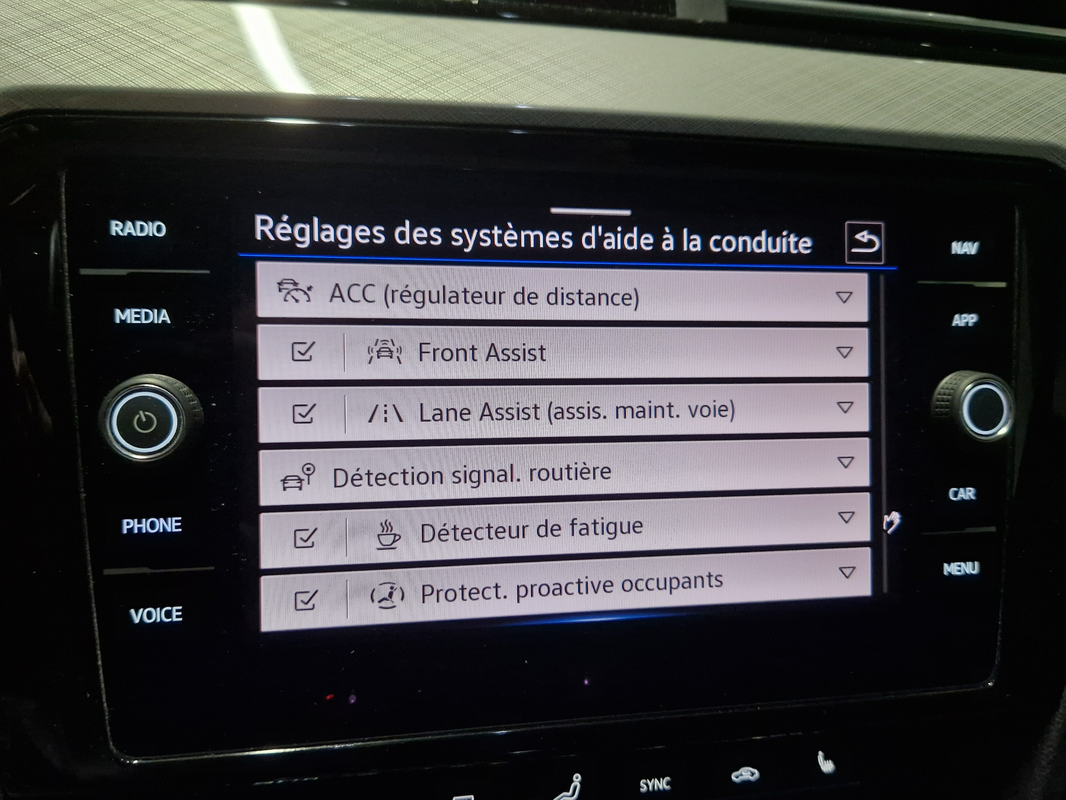 Confort Accoudoir Assistant de démarrage en côte Caméra d'aide au stationnement Capteurs d'aide au stationnement arrière Capteurs d'aide au stationnement avant Climatisation Climatisation automatique, 3 zones Détecteur de lumière Détecteur de pluie Rétroviseurs latéraux électriques Siège à réglage lombaire Sièges arrières 1/3 - 2/3 Sièges chauffants Start/Stop automatique Système de navigation Vitres électriques Volant en cuir Volant multifonctions Divertissement / Médias Android Auto Apple CarPlay Bluetooth Chargeur smartphone à induction Dispositif mains libres MP3 Ordinateur de bord Radio Radio numérique USB Autres Commande vocale Ecran tactile |